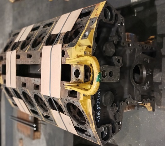 - Für den Weltmarktführer bei Baumaschinen schleifen wir die V12-Motorblöcke, wenn diese Motoren in Europa überholt werden müssen, siehe Bild.