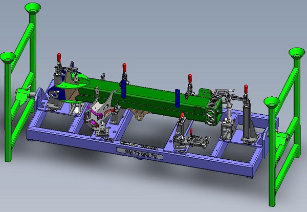 - In der 3D-Konstruktion wird die Vorrichtung auf die Spezialitäten beim Roboter-Schweißen ausgelegt.