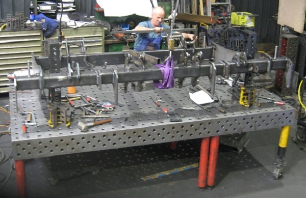 - Auch gemischte Schweißteile aus Stahlblech- und Rohren und Guss-Teilen werden roboter-geschweißt, CNC-bearbeitet und auf der Messmaschine kontrolliert